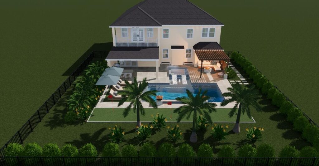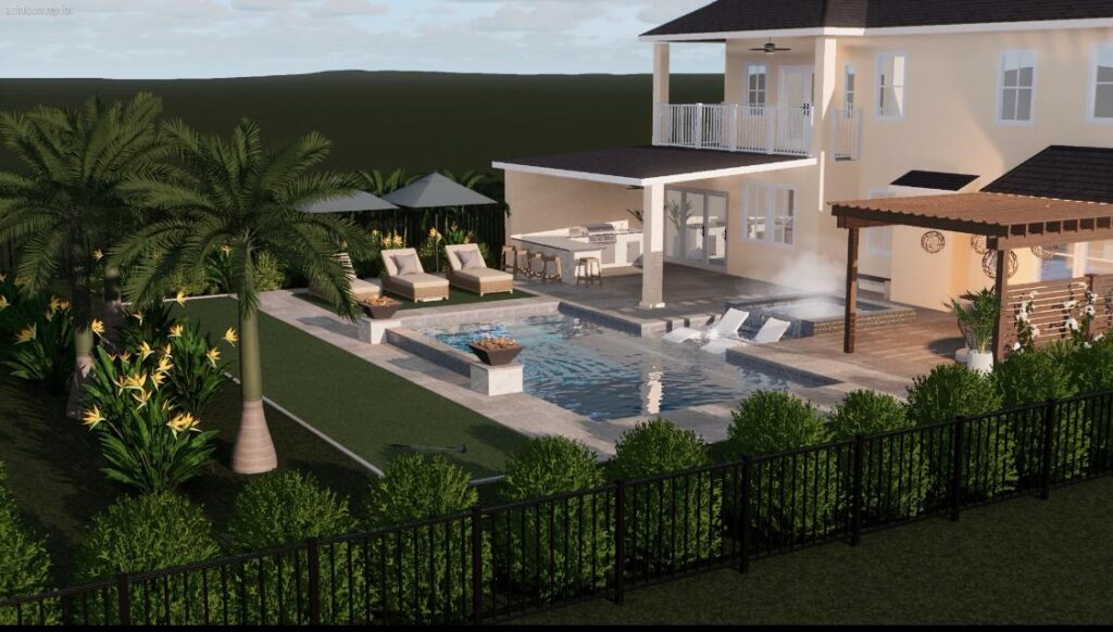Outdoor kitchens, Grills, Pavers, Cabanas, Pergolas, Patios, pool houses, fire pits, and full size custom pools. We handle the full scope – from 3D design to final installation, you work directly with our team to create exactly what you want.