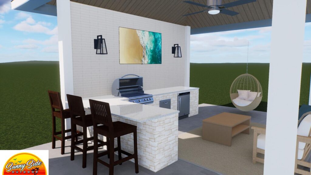 We design and construct full outdoor culinary setups – professional-grade grills, granite or stainless countertops, outdoor refrigeration, weatherproof storage, plumbing, and integrated lighting. Everything you’d expect in a high-end indoor kitchen, built to handle Florida weather.